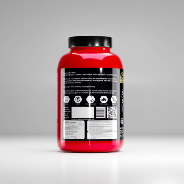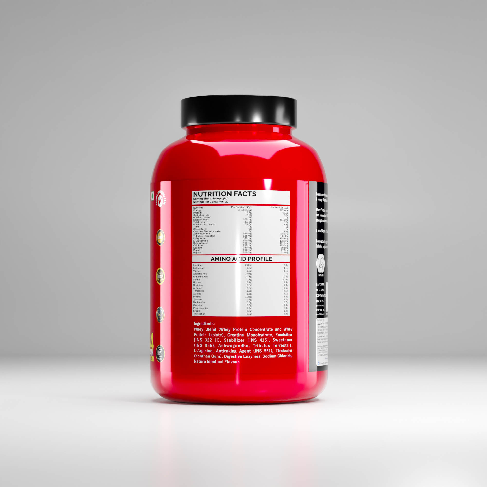 Whey Protein is sourced from premium quality, Bio-engineered whey protein (isolate and concentrate). Whey protein promotes lean muscle growth, It benefits in increasing strength and muscle recovery.